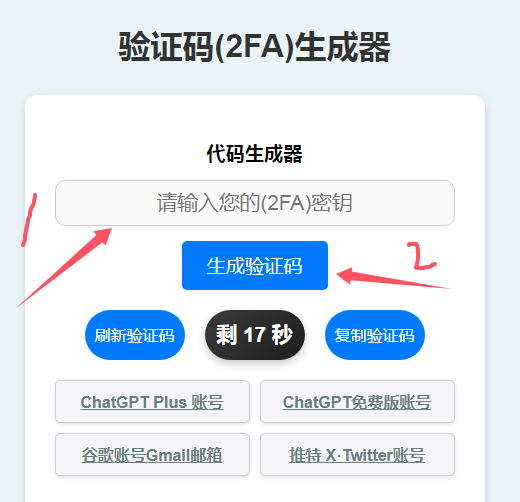 输入账号——密码后。打开地址:https://www.2fa.ooo/#google_vignette